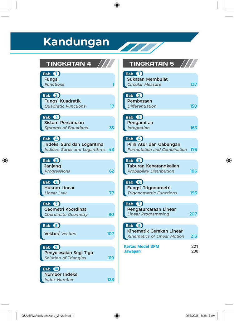 Skema Jawapan SPM Matematik Tambahan (Dwi) KSSM Tg 4&5